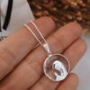 Conjunto de plata. Cadenita de plata 40 cm. de largo. Dije de plata y nácar de 1,2 cm de largo.